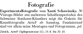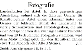 nun die Zürcher Galerie Arte F für Kunstfotografie.